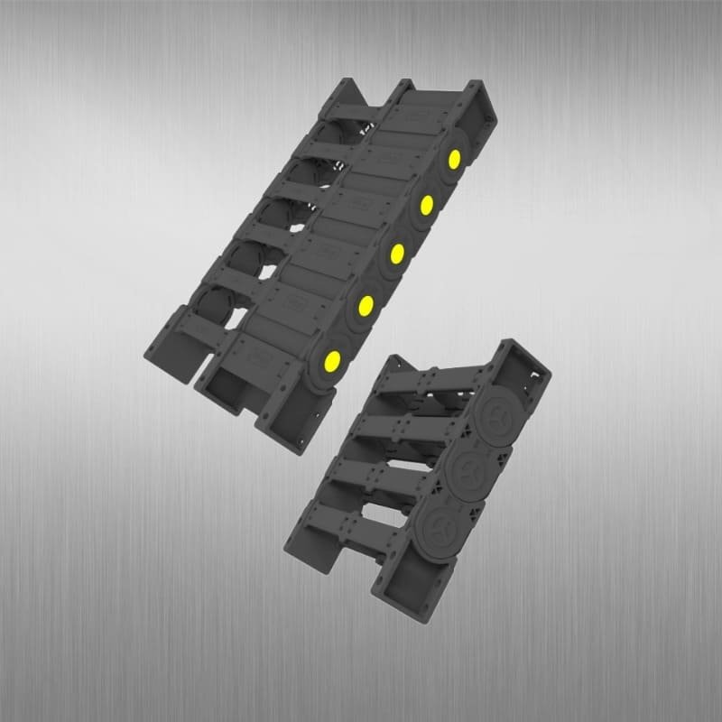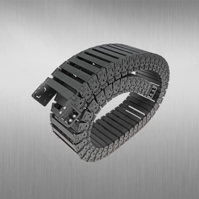 Engineering plastic and metal cable drag chains for CNC machines, automation lines and robots. Custom sizes with fast delivery.